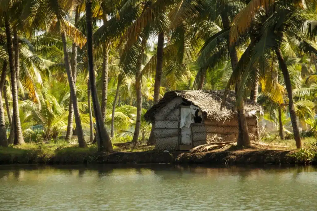 אי בלב תעלות המים (Backwaters) שבאזור קולאם (Kollam) וורקלה (Varkala), בדרום קראלה.