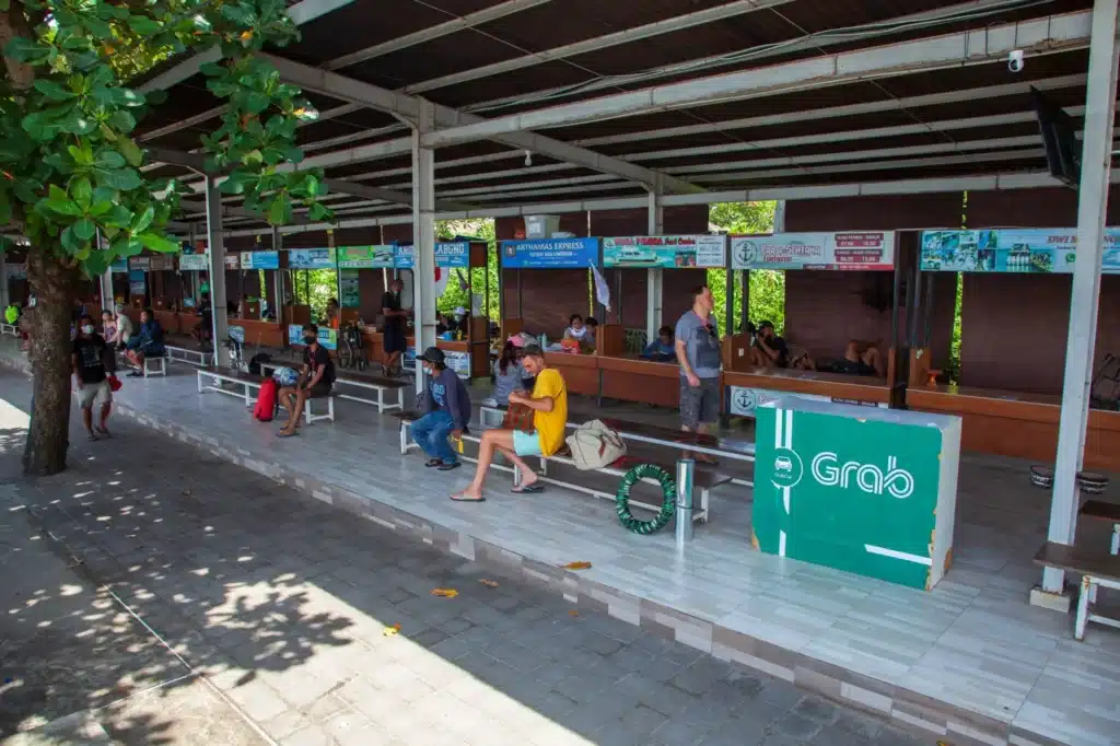בסירה מהירה או מעבורת מנמל סאנור. הנסיעה קצרה ואפשר לסגור דרך סוכנויות מקומיות או דרך 12Go.