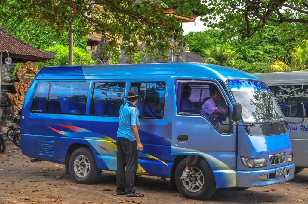 הדרך הנפוצה ביותר היא השכרת קטנוע – זול (15-20 ש”ח ליום) ונותן חופש תנועה מלא. אם אין לכם ניסיון בדו-גלגלי, אפשרויות נוספות הן אפליקציות Grab ו-Gojek (זולות ובלי מיקוח), נהג פרטי ליום שלם (130-180 ש”ח), או מוניות Blue Bird עם מונה.